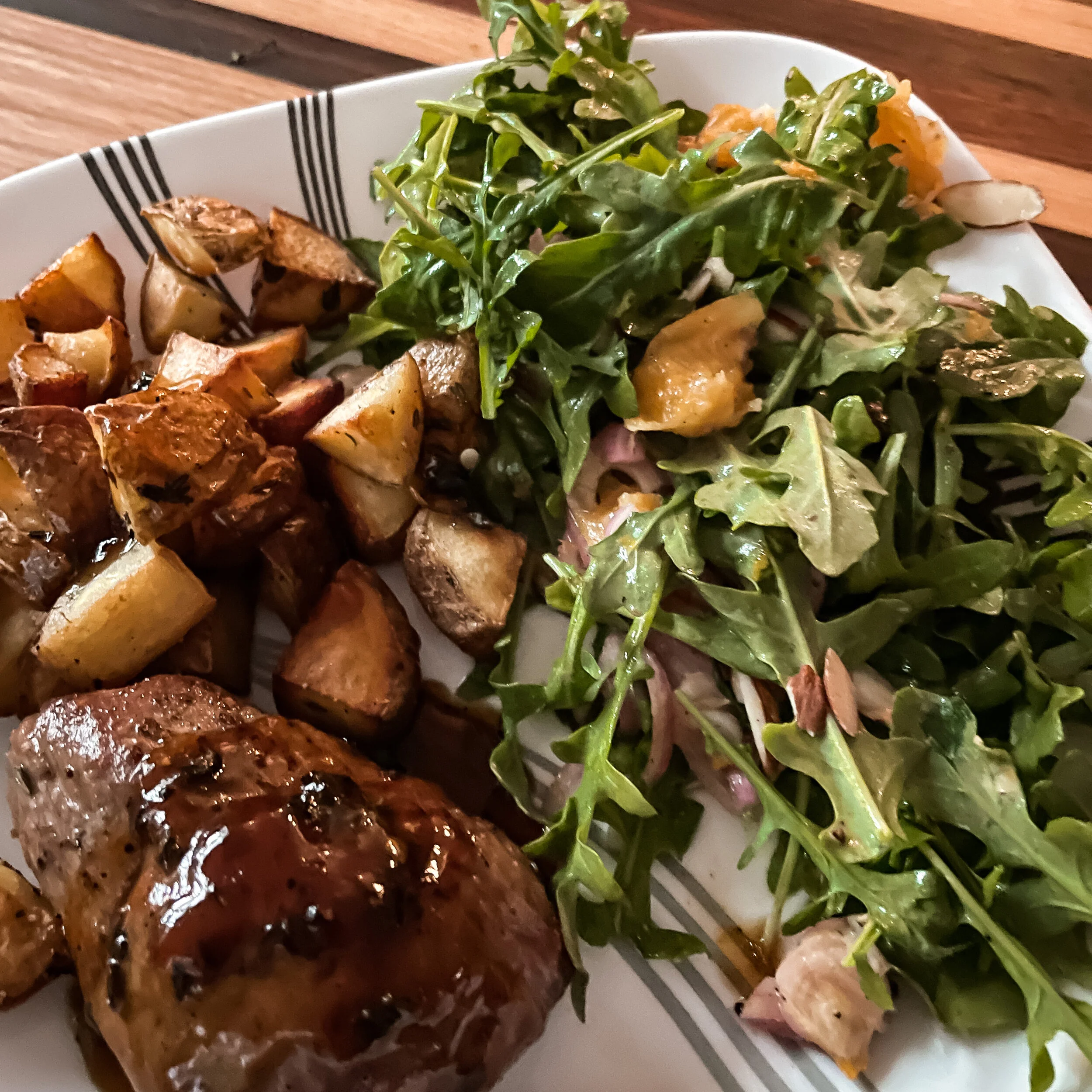 with Duck Fat Potatoes & Arugula Almond Salad